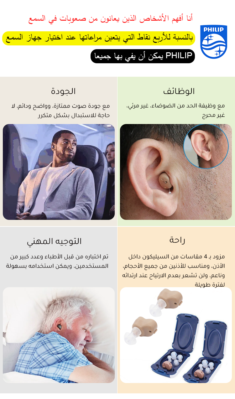 تتميز هذه السماعة الألمانية الصنع بتقنية مزدوجة لخفض الضوضاء، وجودة صوت ممتازة، وملاءمة مريحة. كما أنها مزودة بأوضاع متعددة تتكيف تلقائيًا مع مختلف البيئات، مما يتيح لك سماع الأصوات بوضوح أكبر. تزن السماعة غرامين فقط، وهي مريحة في الارتداء ولا تؤذي الأذنين، مما يجعلها إكسسوارًا مثاليًا للاستخدام اليومي لكبار السن.