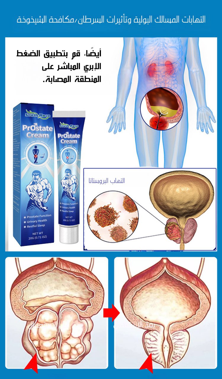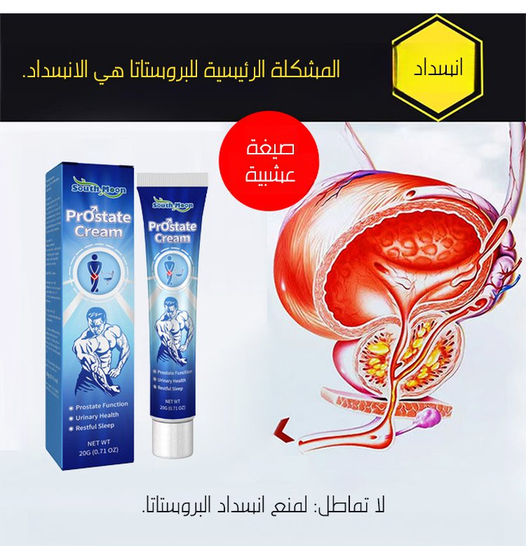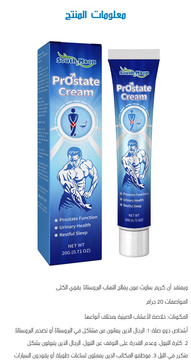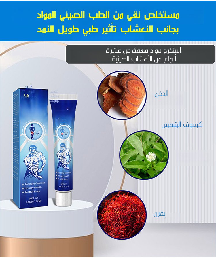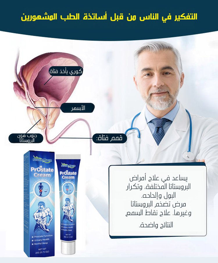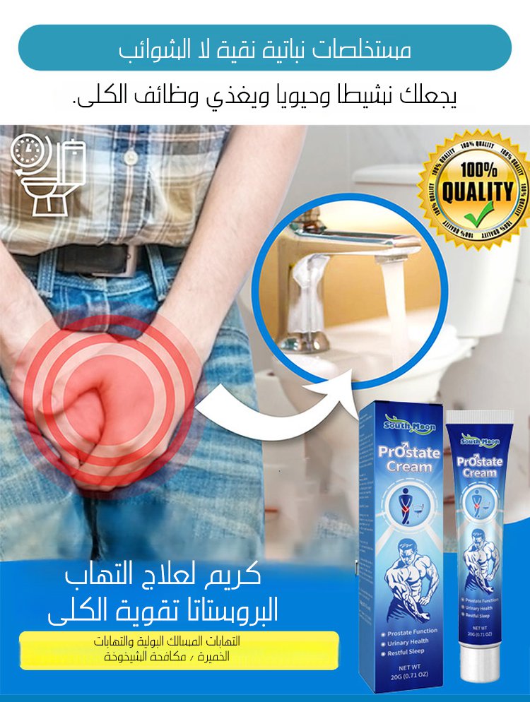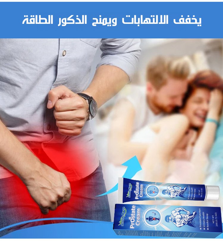 كثير رجال يعانون من التهابات البروستات، التبول المتكرر و الألم، لكن الحل صار أسهل مع هذا الكريم، تركيبته طبية فعالة تساعدك تسترجع راحتك بسرعة، يخفف الالتهاب و الألم،